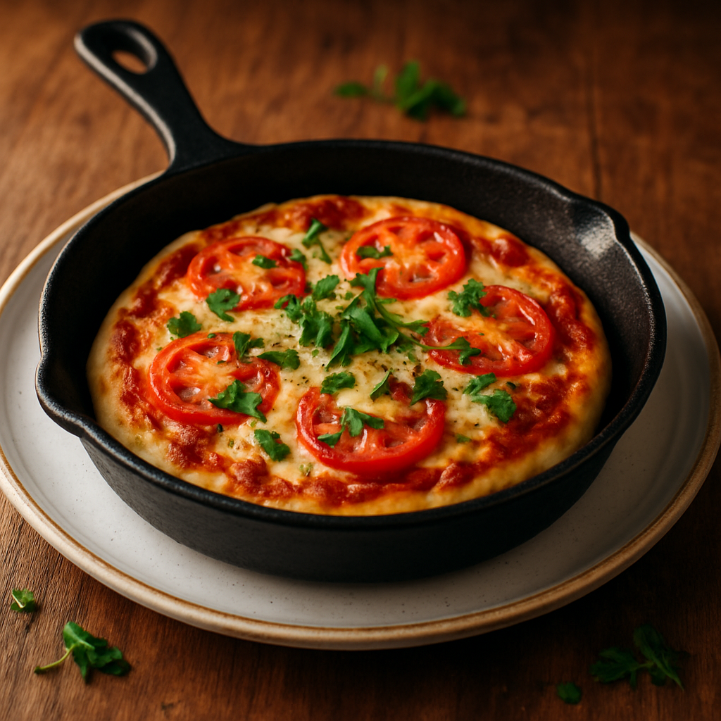 Una pizza rápida y deliciosa, cocinada directamente en la sartén para disfrutar en minutos.